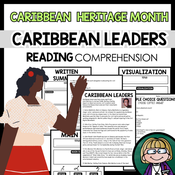 Grow your students knowledge with this Nonfiction Reading Comprehension Passage - Caribbean Heritage Month - Caribbean Leaders   These reading practice passages are perfect for: warm-up, bell work, homework, or weekly assessments. Students can use independently in literacy groups, guided reading...View more