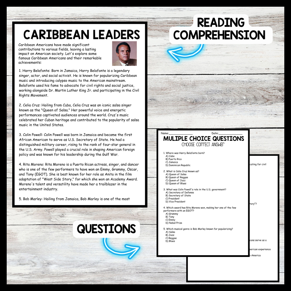 Caribbean Heritage Month - Caribbean Leaders Reading comprehension Passage and Questions
