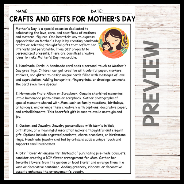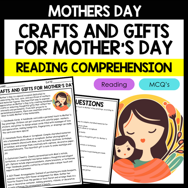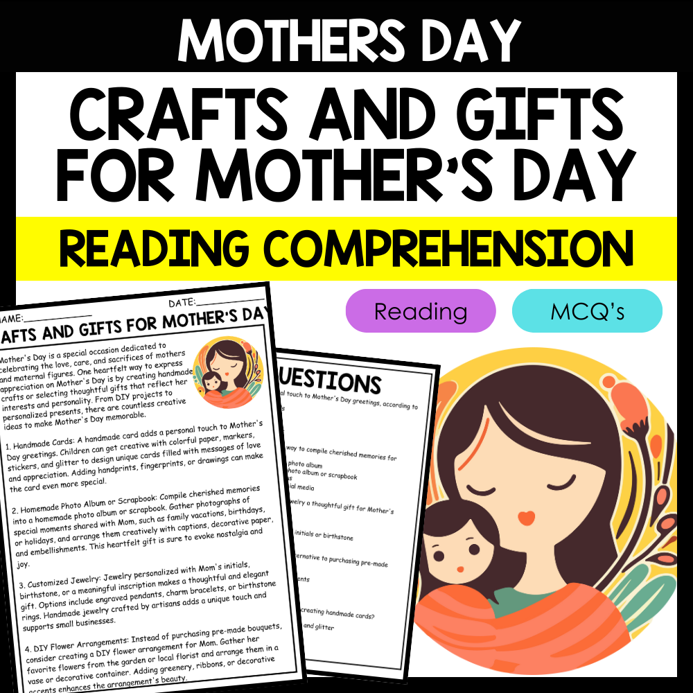 - "CRAFTS AND GIFTS FOR MOTHER'S DAY" MOTHER'S DAY Reading Comprehension