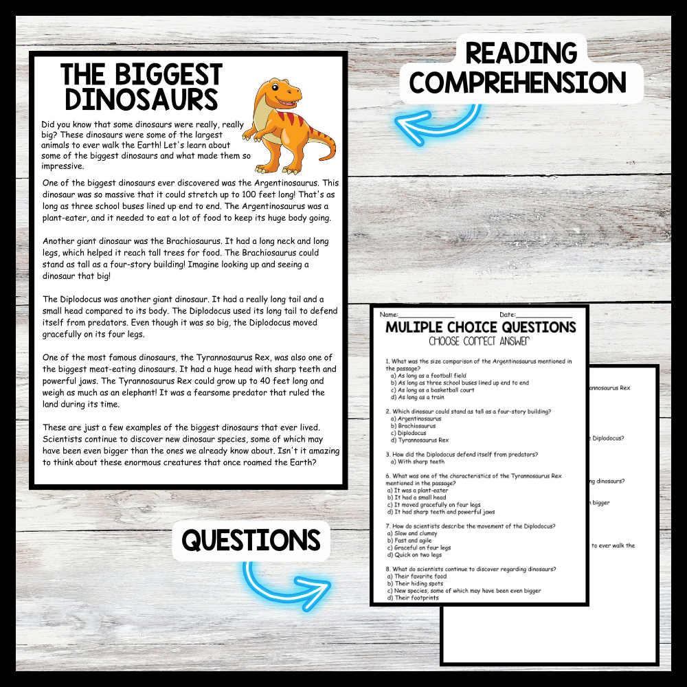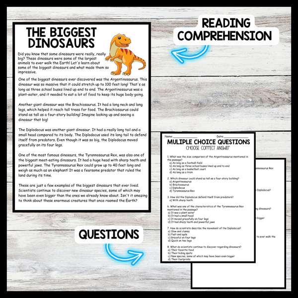 Dinosaur Day - Biggest Dinosaurs Reading comprehension Passage and Questions