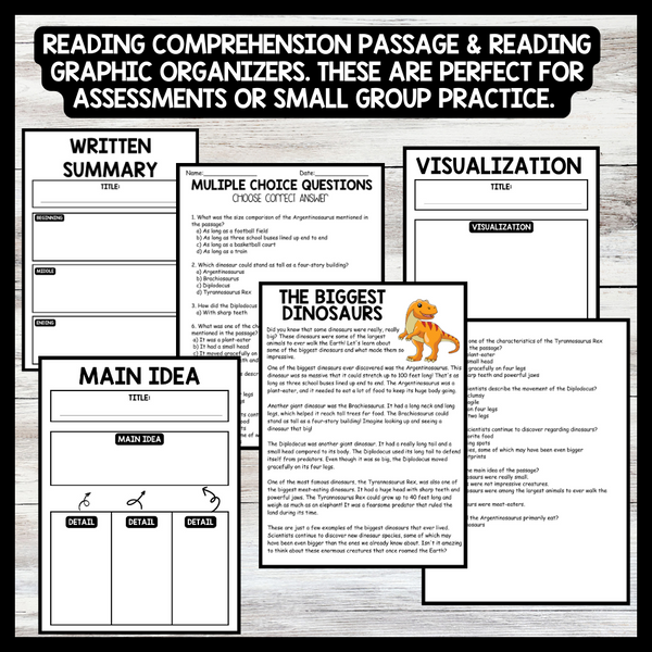 Grow your students knowledge with this Nonfiction Reading Comprehension Passage - Dinosaur Day - Biggest Dinosaurs  These reading practice passages are perfect for: warm-up, bell work, homework, or weekly assessments. Students can use independently in literacy groups, guided reading groups....View more