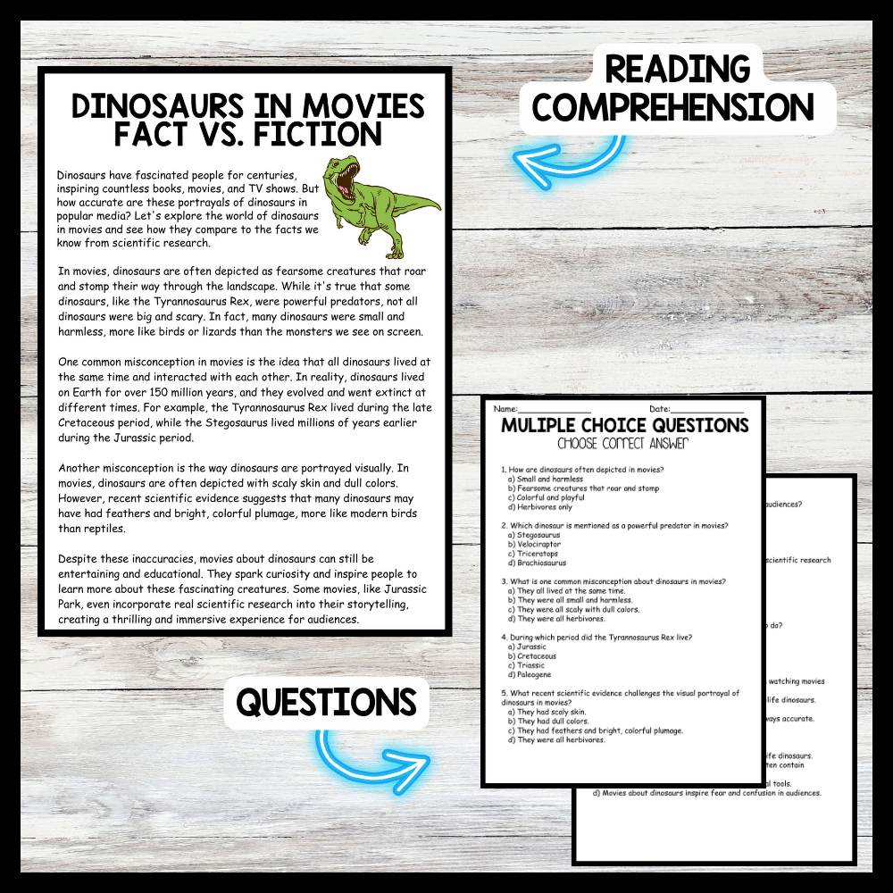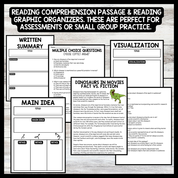 Dinosaur Day - Dinosaurs in Movies Fact vs. Fiction Reading comprehension Passage and Questions