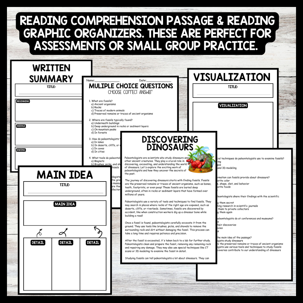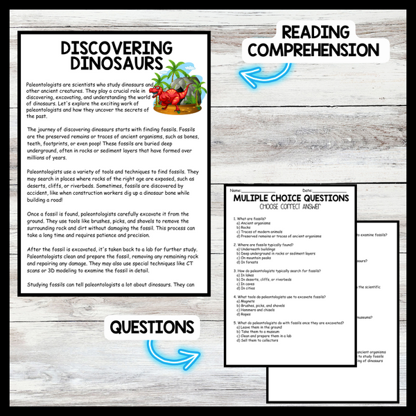 Dinosaur Day - Discovering Dinosaurs Reading comprehension Passage and Questions