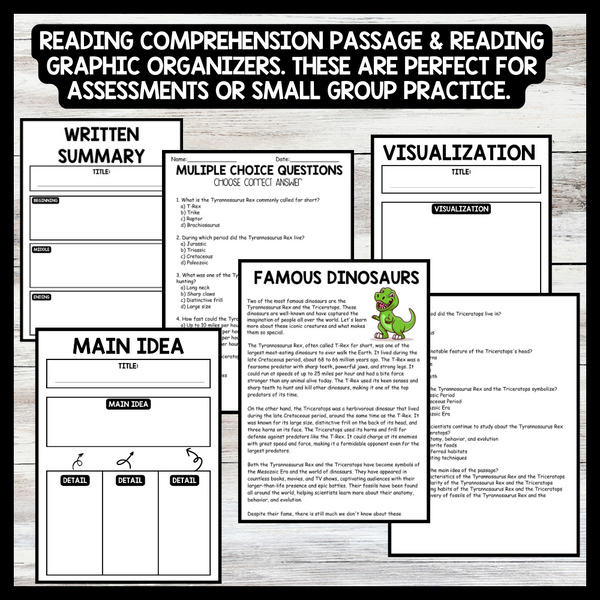 Grow your students knowledge with this Nonfiction Reading Comprehension Passage - Dinosaur Day - Famous Dinosaurs These reading practice passages are perfect for: warm-up, bell work, homework, or weekly assessments. Students can use independently in literacy groups, guided reading groups....View more