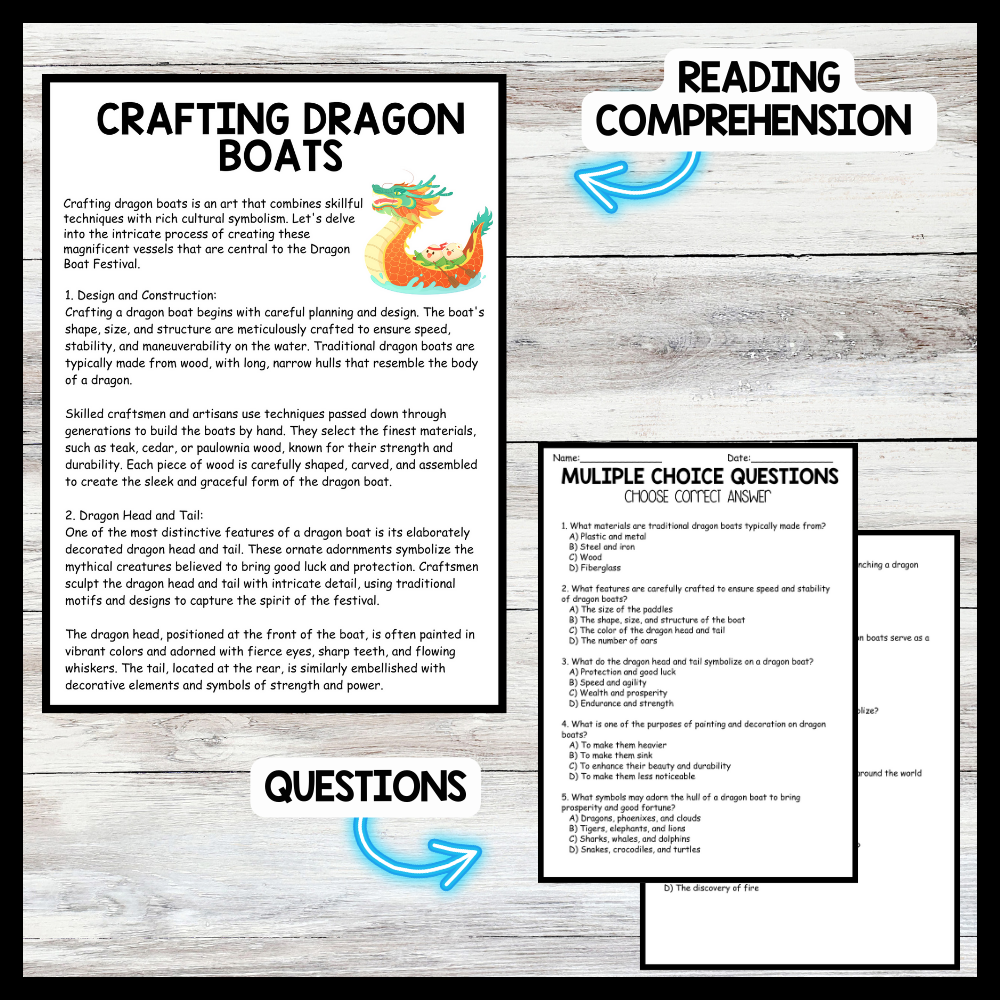 Grow your students knowledge with this Nonfiction Reading Comprehension Passage - Dragon Boat Racing - Crafting Dragon Boats