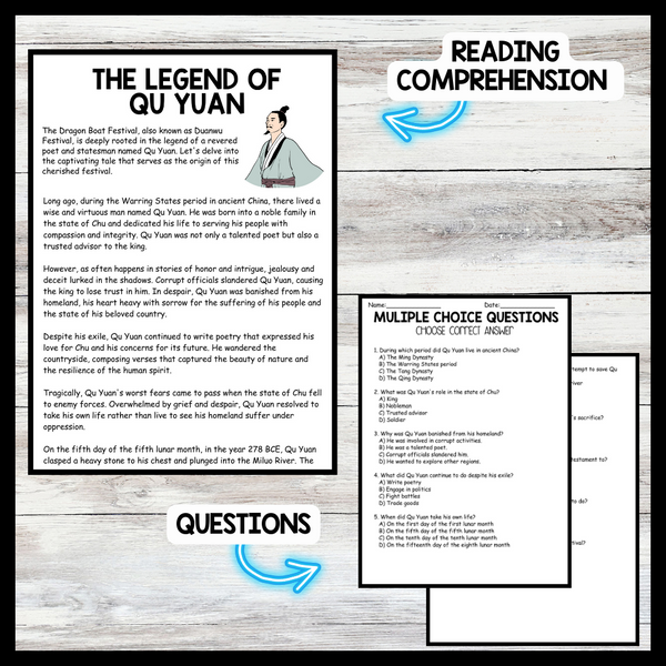Grow your students knowledge with this Nonfiction Reading Comprehension Passage - Dragon Boat Racing - The Legend of Qu Yuan