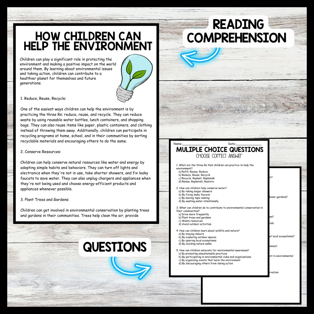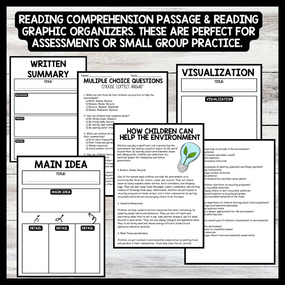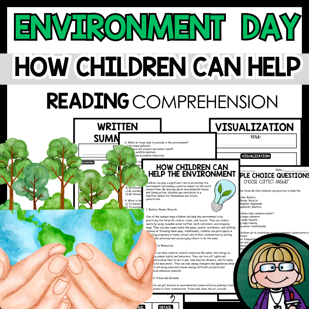 Grow your students knowledge with this Nonfiction Reading Comprehension Passage - Environment  Day - How Children Can Help   These reading practice passages are perfect for: warm-up, bell work, homework, or weekly assessments. Students can use independently in literacy groups, guided...View more