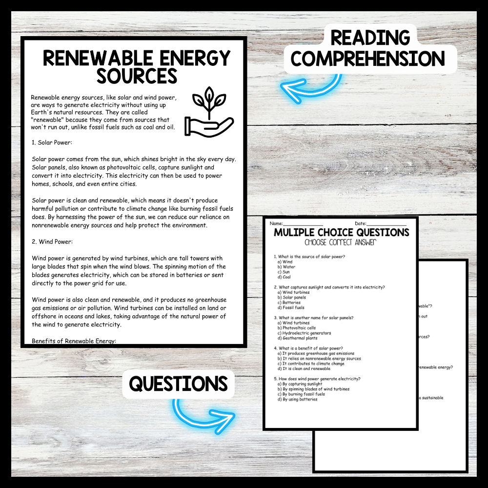Grow your students knowledge with this Nonfiction Reading Comprehension Passage - Environment Day - Renewable Energy Sources