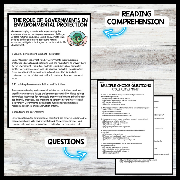 Grow your students knowledge with this Nonfiction Reading Comprehension Passage - Environment Day - Role of Governments