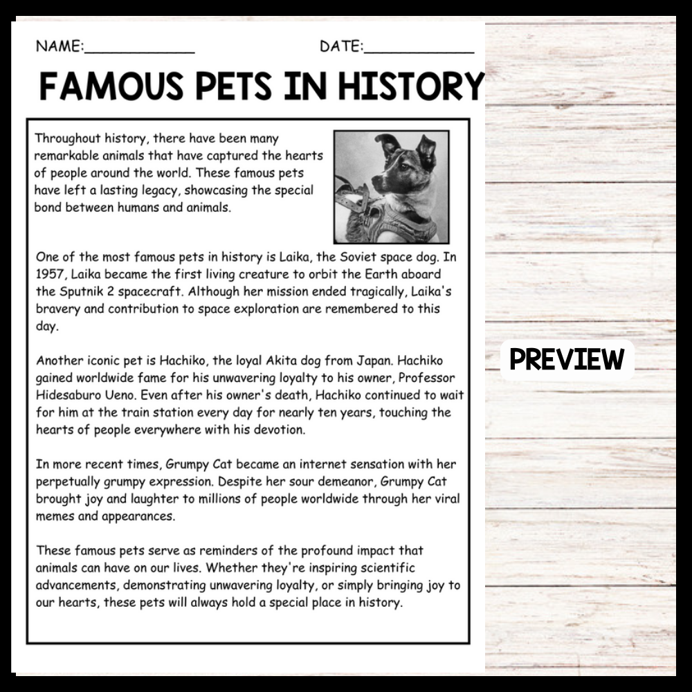 - "FAMOUS PETS IN HISTORY" NATIONAL PET DAY Reading Comprehension