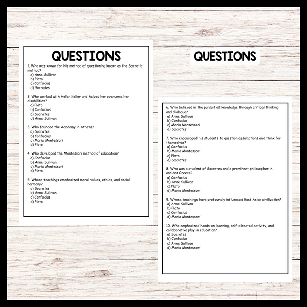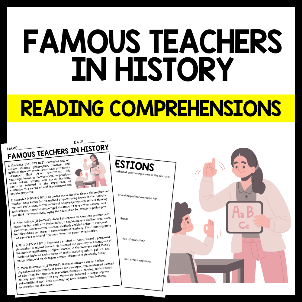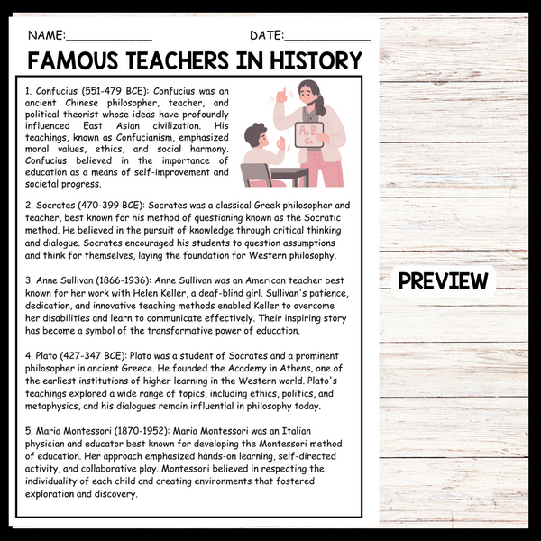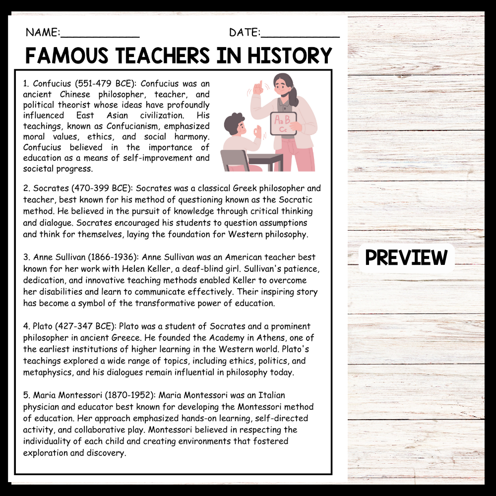 - "FAMOUS TEACHERS IN HISTORY" Teacher Day Reading Comprehension