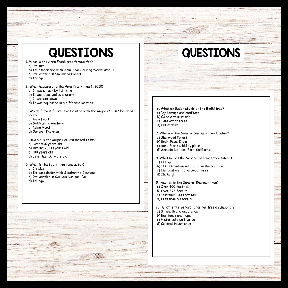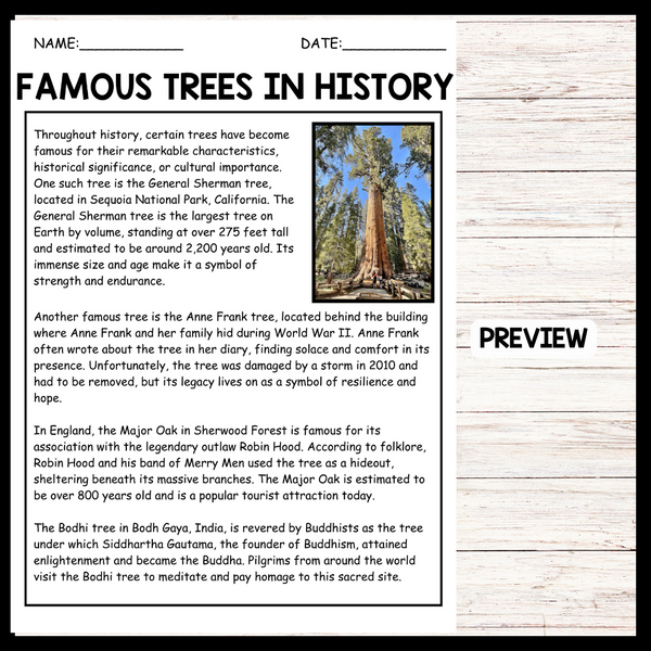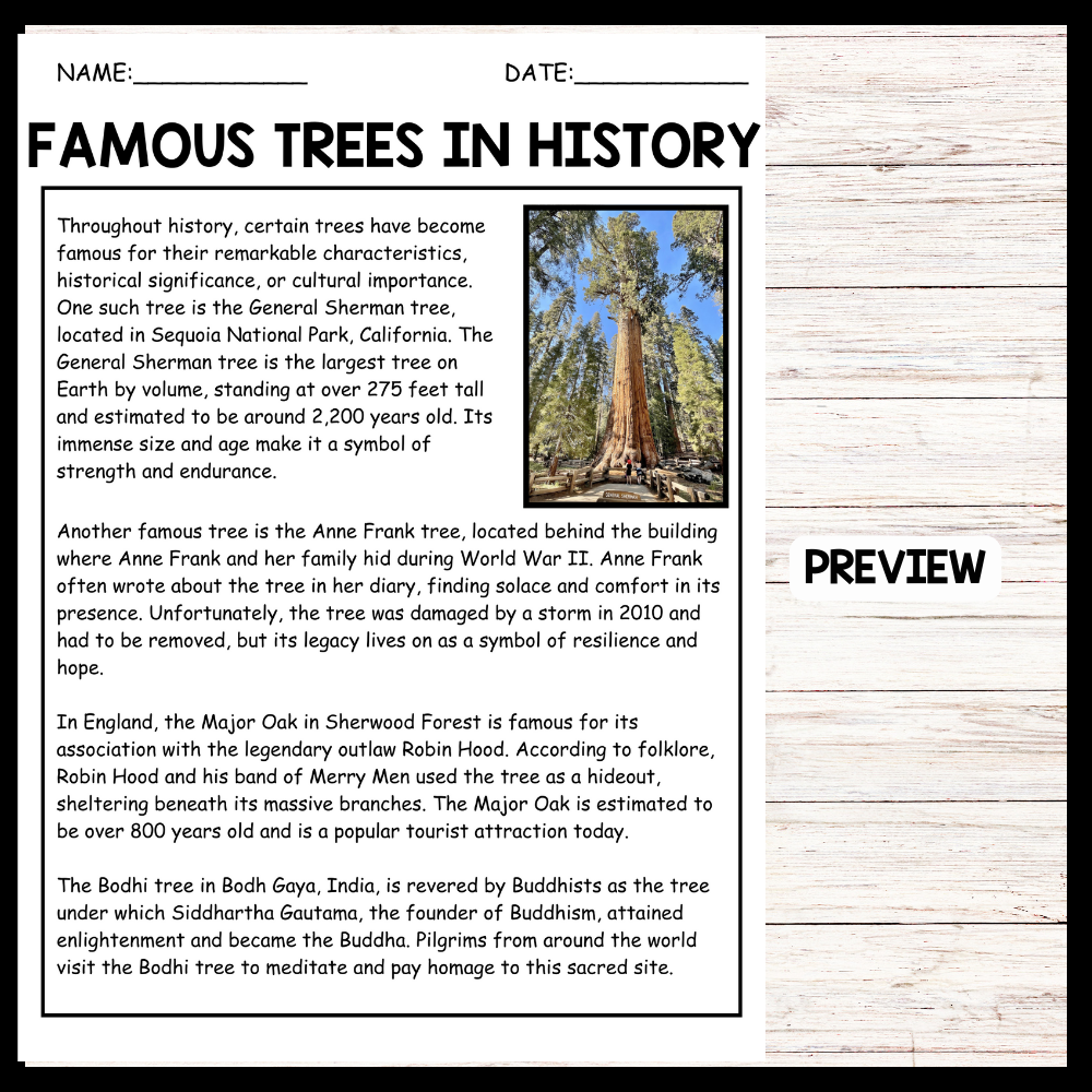 - "FAMOUS TREES IN HISTORY" ARBOR DAY Reading Comprehension