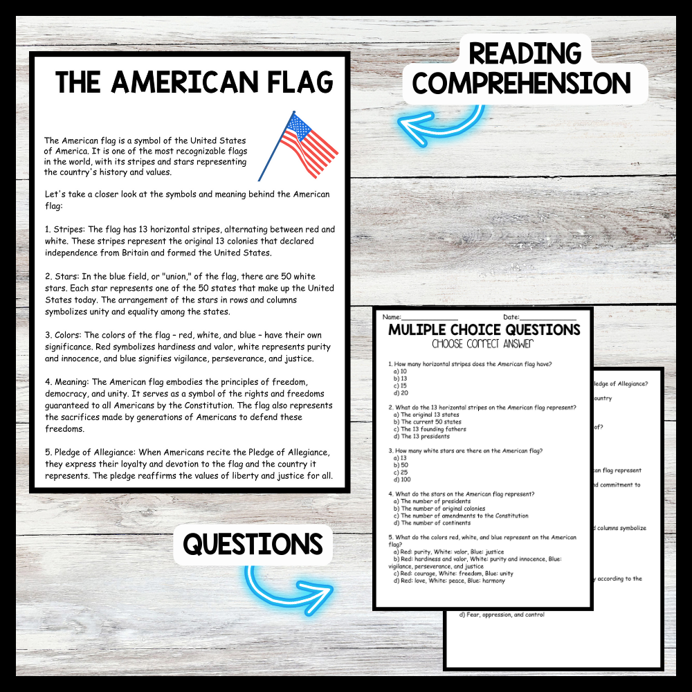 Flag Day - The American Flag Reading comprehension Passage and Questions