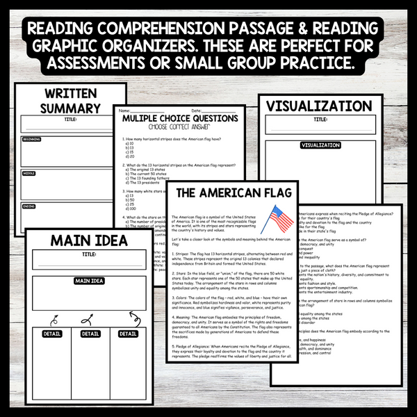 Grow your students knowledge with this Nonfiction Reading Comprehension Passage - Flag Day - The American Flag These reading practice passages are perfect for: warm-up, bell work, homework, or weekly assessments. Students can use independently in literacy groups, guided reading...View more