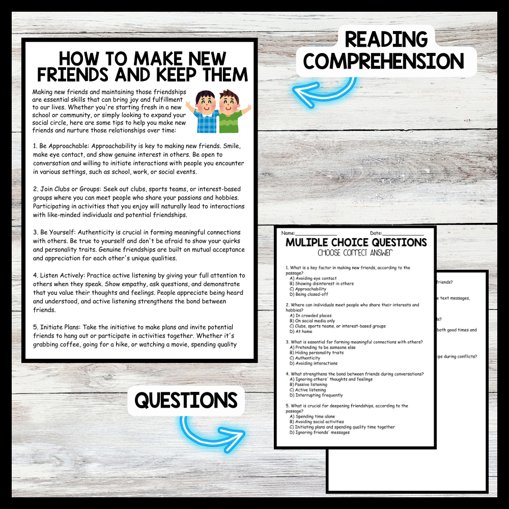 Grow your students knowledge with this Nonfiction Reading Comprehension Passage - Friends Day - How to Make New Friends