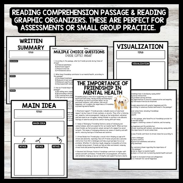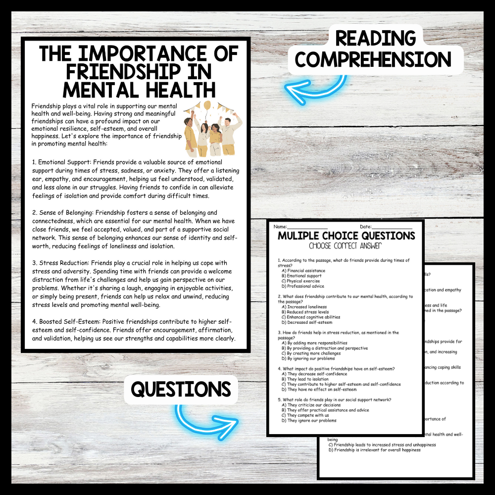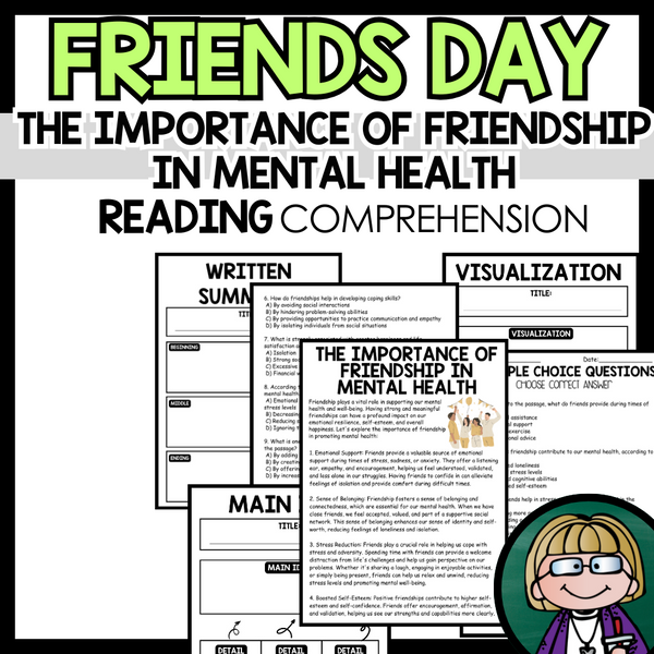 Grow your students knowledge with this Nonfiction Reading Comprehension Passage - Friends Day - The Importance of Friendship in Mental Health These reading practice passages are perfect for: warm-up, bell work, homework, or weekly assessments. Students can use independently in...View more