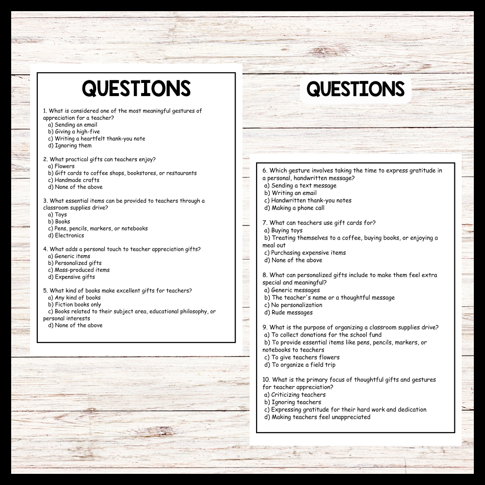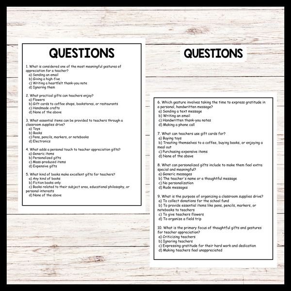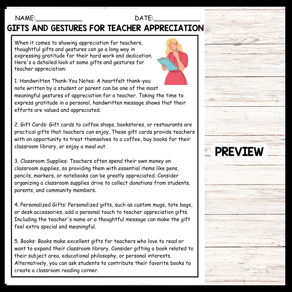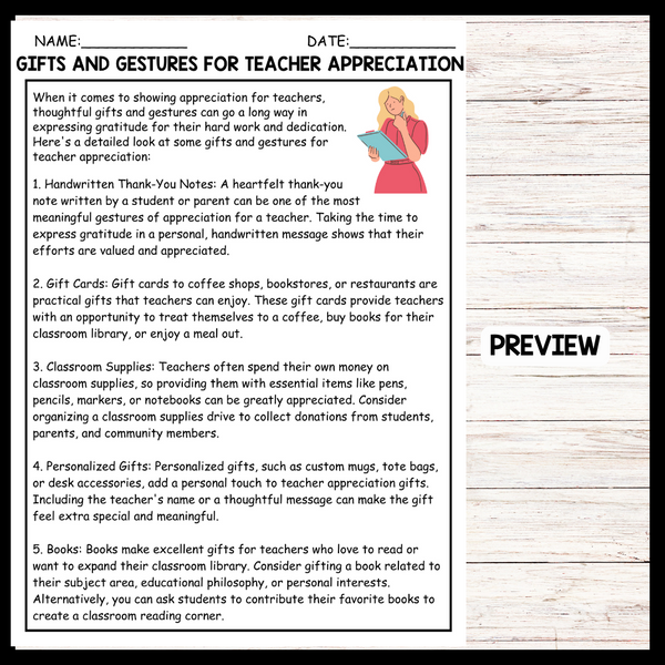 - "GIFTS AND GESTURES FOR TEACHER APPRECIATION" Teacher Day Reading Comprehension