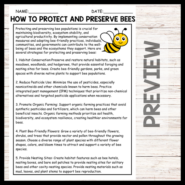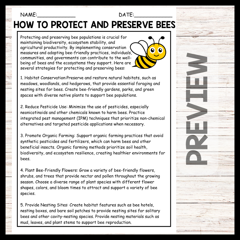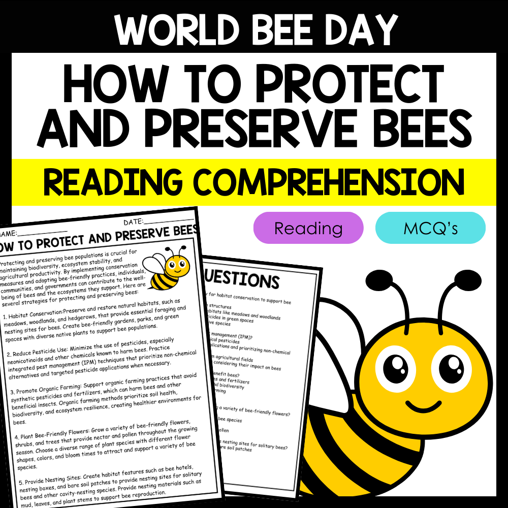 - "HOW TO PROTECT AND PRESERVE BEES" WORLD BEE DAY Reading Comprehension