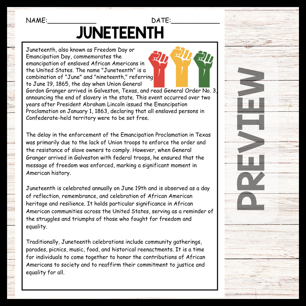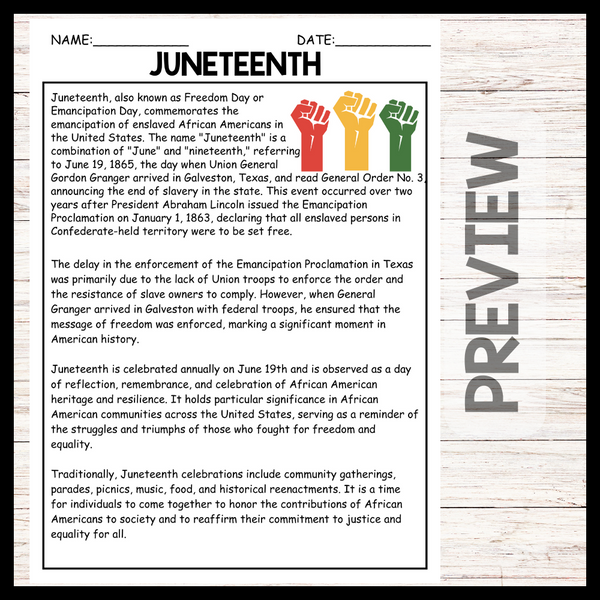 - "JUNETEENTH" JUNETEENTH Reading Comprehension
