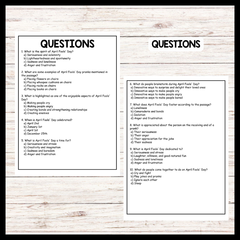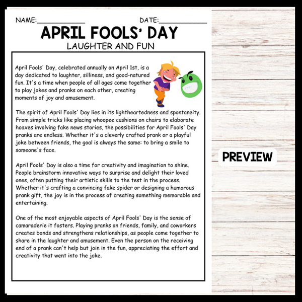 - "LAUGHTER AND FUN" APRIL FOOLS' DAY Reading Comprehension