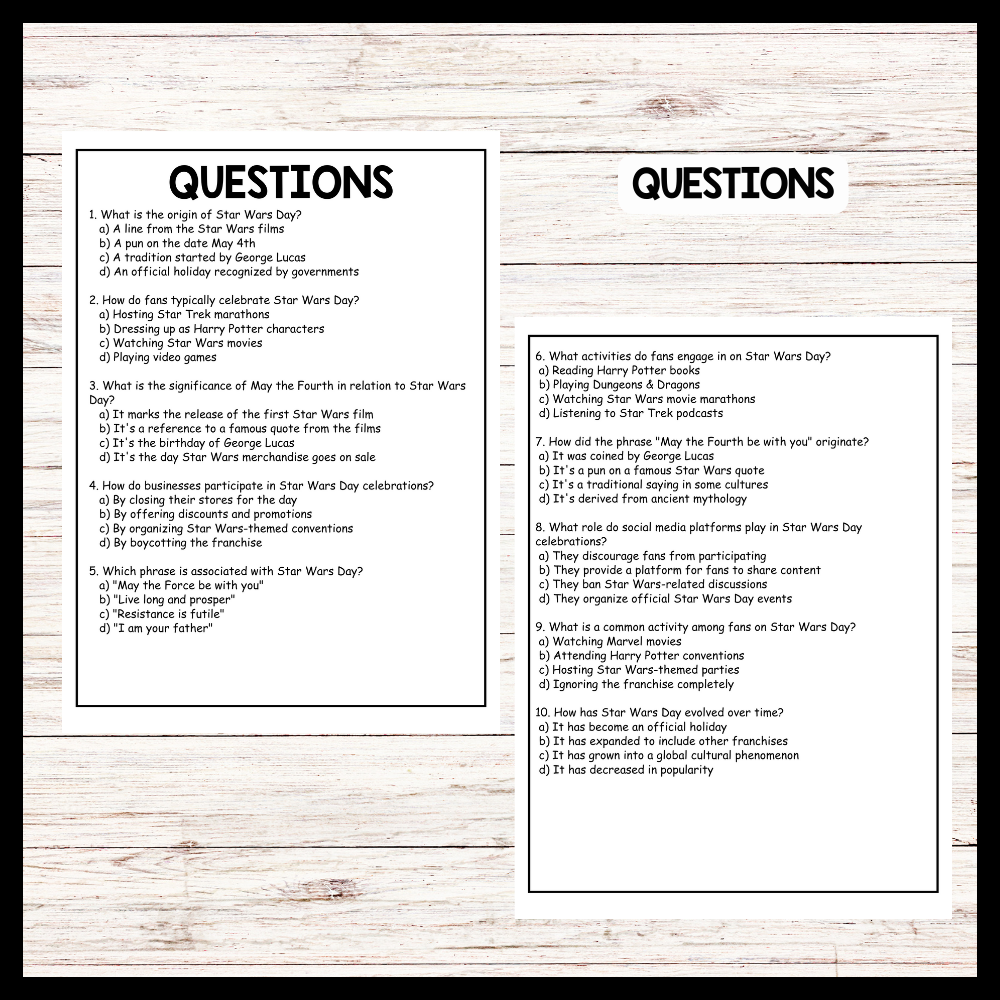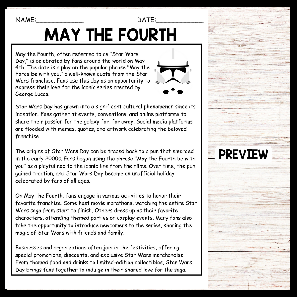 - "MAY THE FOURTH" MAY THE FOURTH Reading Comprehension