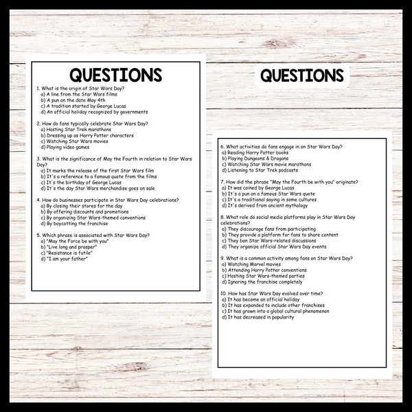 Star Wars Day, celebrated on May the Fourth, has become a major cultural event. Fans celebrate with movie marathons, cosplay, themed parties, and social media activities. Originating from the pun "May the Fourth be with you," this unofficial holiday brings together enthusiasts of all ages. Businesses also participate by offering special promotions and exclusive merchandise, making it a day of widespread celebration for the beloved franchise.