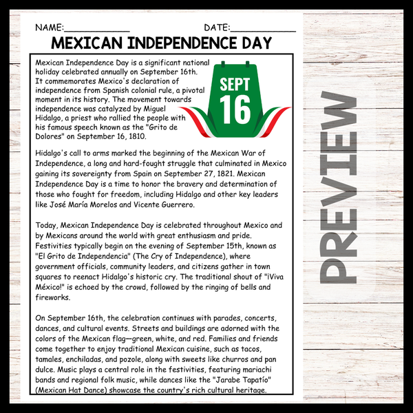 For teachers, this passage is a useful tool to discuss historical events and cultural traditions, emphasizing key figures like Miguel Hidalgo. It helps students appreciate courage and national identity, while exploring cultural aspects such as traditional cuisine and music promotes cultural awareness and historical literacy. Overall, the passage enriches students' understanding of Mexican history and culture.