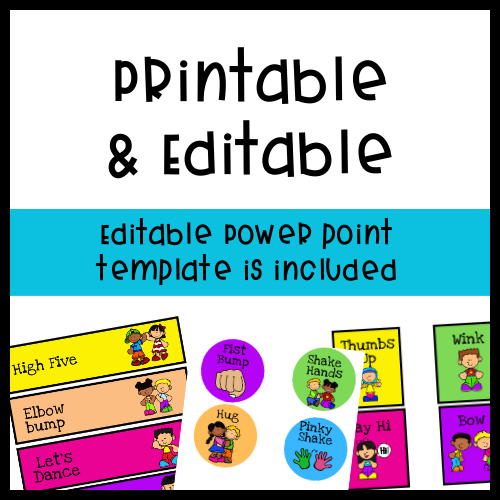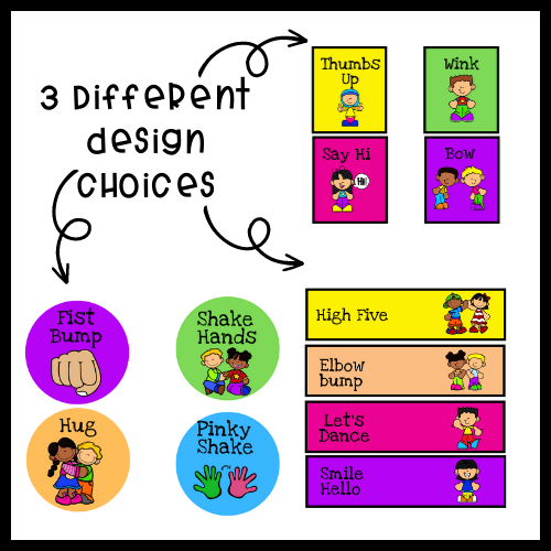 These morning greeting choices will immediately impact your classroom culture! Post these morning greeting signs on your classroom door as teacher or a student greeter warmly welcomes classmates as students choose their morning greeting when entering the room. You can also post them in any virtual classroom setting.