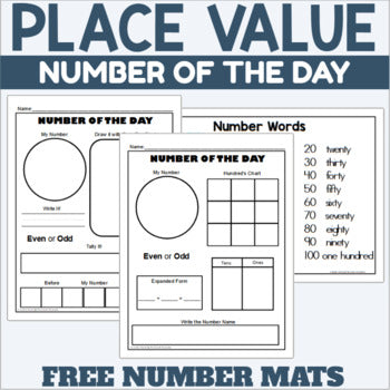 Practice working with 2 digit numbers with this number of the day worksheet practice. These math worksheets make a great morning work activity for students to do each day as they enter class. This packet contains two pages for students to practice number sense activities for the numbers 1-100 as well as a chart for learning to write the number names.