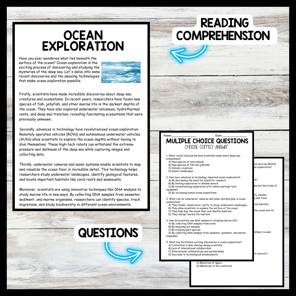 Grow your students knowledge with this Nonfiction Reading Comprehension Passage - Ocean Day - Ocean Exploration