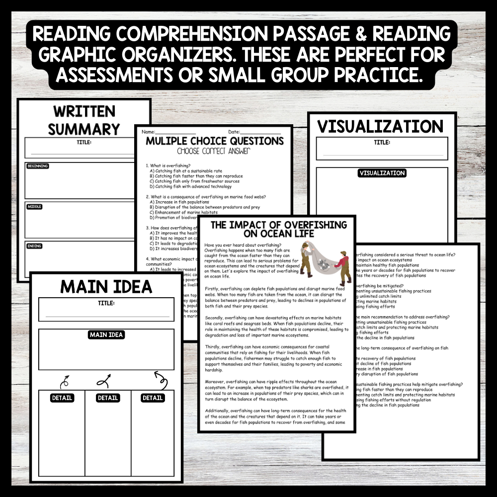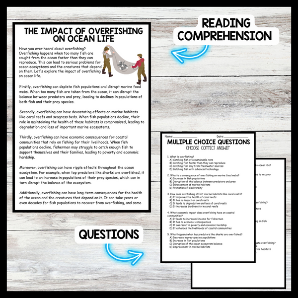 Grow your students knowledge with this Nonfiction Reading Comprehension Passage - Ocean Day - The Impact of Overfishing on Ocean Life These reading practice passages are perfect for: warm-up, bell work, homework, or weekly assessments. Students can use independently in...View more