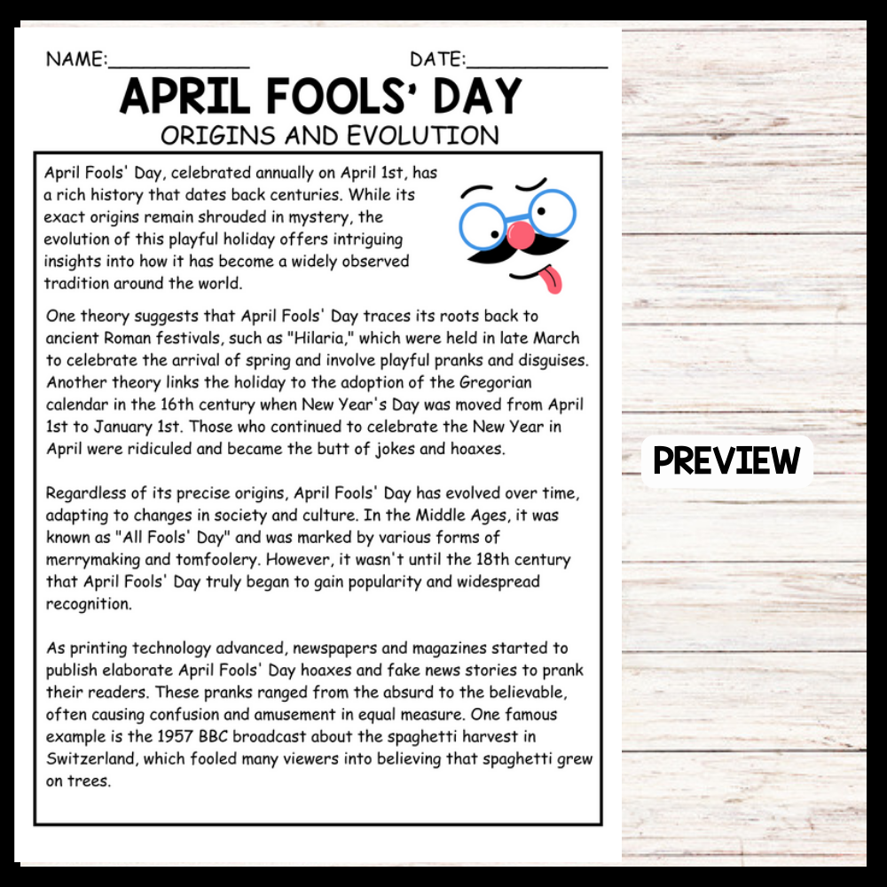 - "ORIGINS AND EVOLUTION" APRIL FOOLS' DAY Reading Comprehension