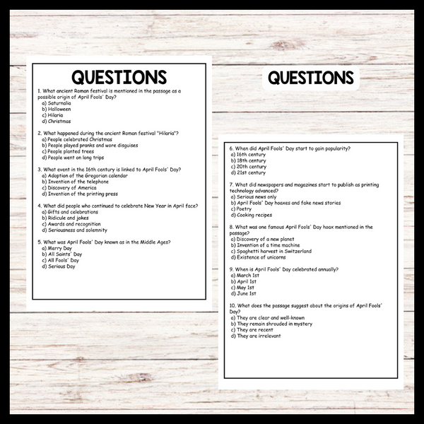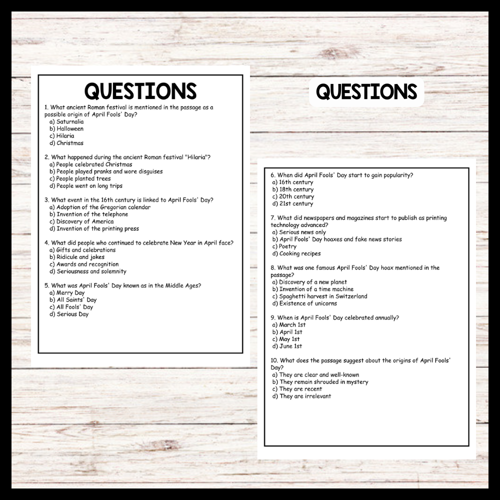 This passage explores the potential origins of April Fools' Day, linking it to ancient Roman festivals like "Hilaria" and the 16th-century adoption of the Gregorian calendar. It outlines the evolution of the holiday, noting its medieval roots as "All Fools' Day" and its rise in popularity during the 18th century. The passage also highlights the role of media in perpetuating elaborate pranks, exemplified by the 1957 BBC spaghetti harvest hoax. Teachers can use this passage to provide students with historical context and examples of April Fools' Day pranks, enhancing their understanding of the holiday's cultural significance.