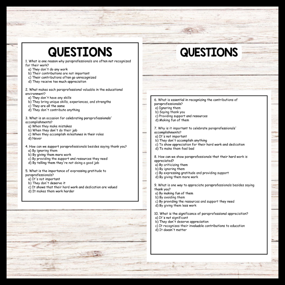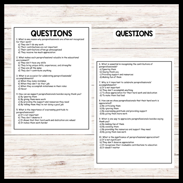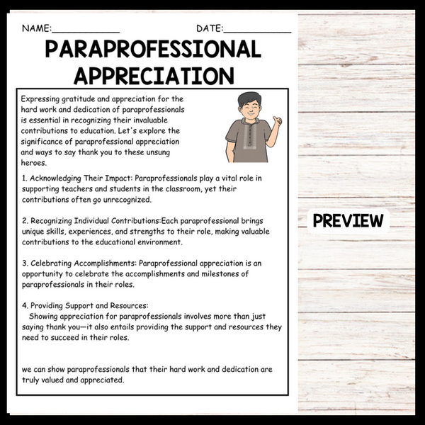 - "PARAPROFESSIONAL APPRECIATION" PARAPROFESSIONAL DAY Reading Comprehension