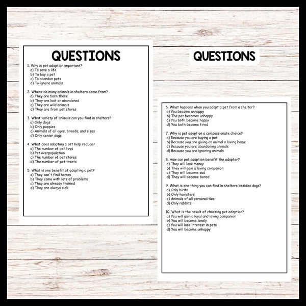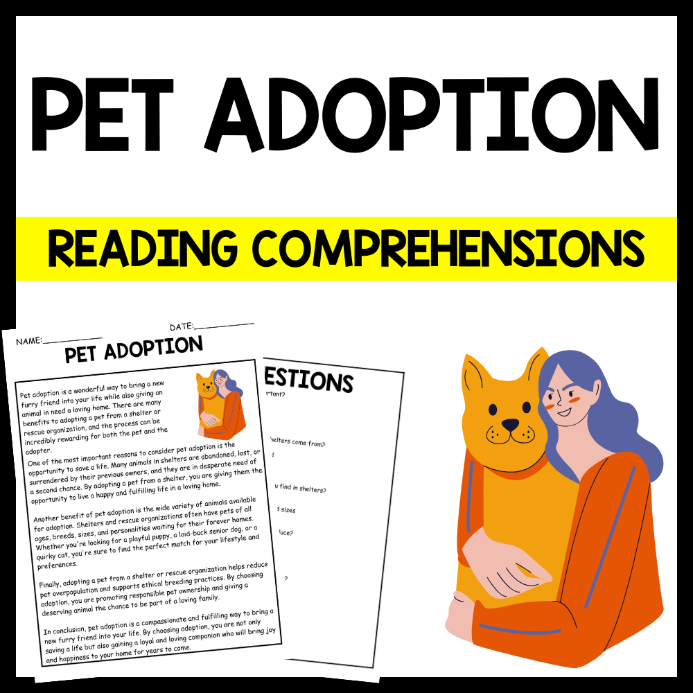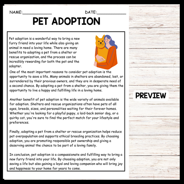 - "PET ADOPTION" NATIONAL PET DAY Reading Comprehension