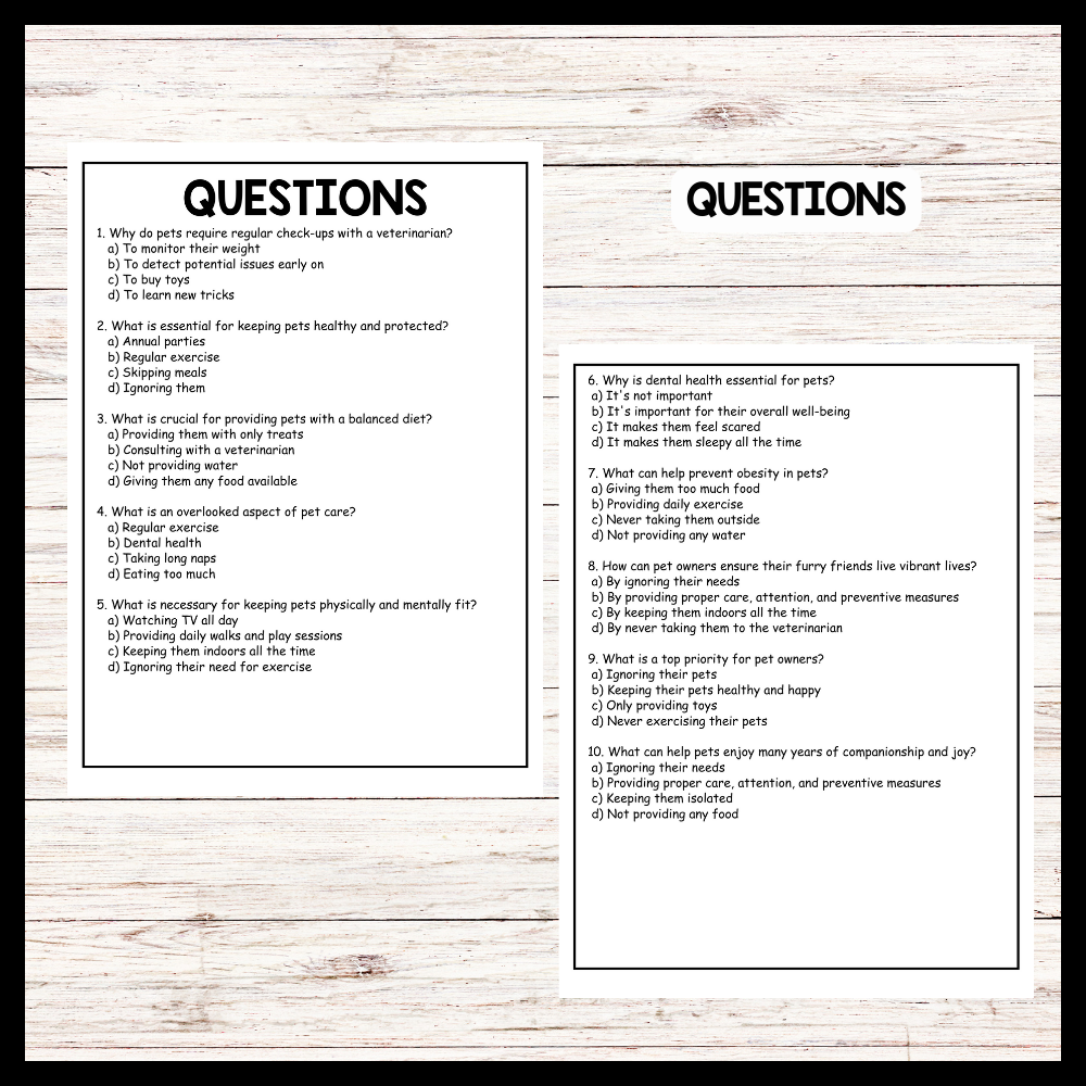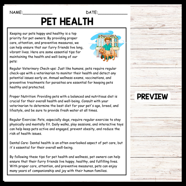 - "PET HEALTH" NATIONAL PET DAY Reading Comprehension