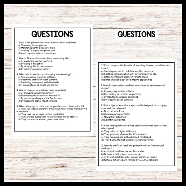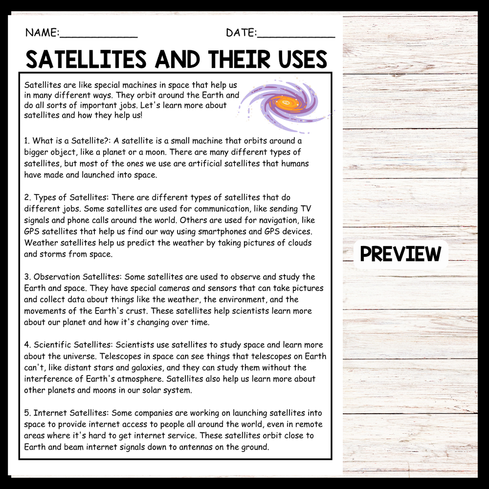 - "SATELLITES AND THEIR USES" SPACE DAY Reading Comprehension