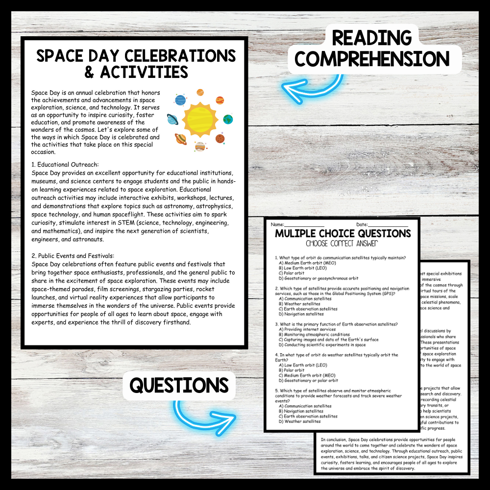 Grow your students knowledge with this Nonfiction Reading Comprehension Passage - Space Day - Celebrations