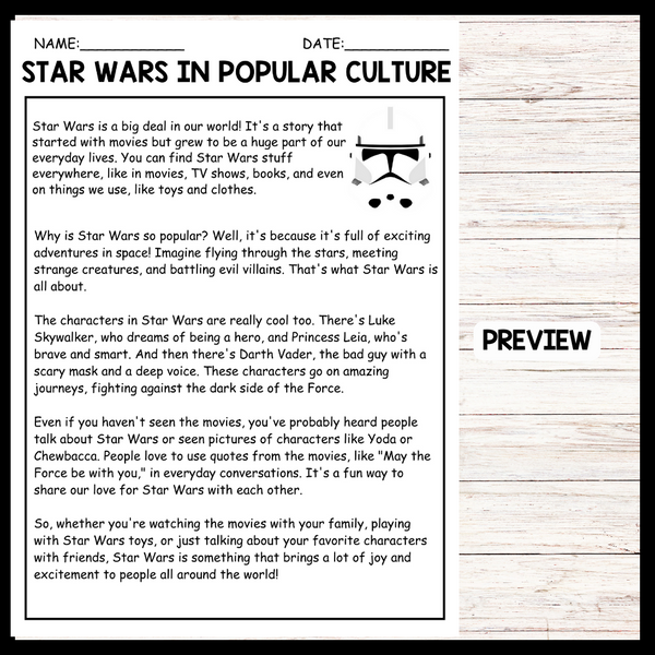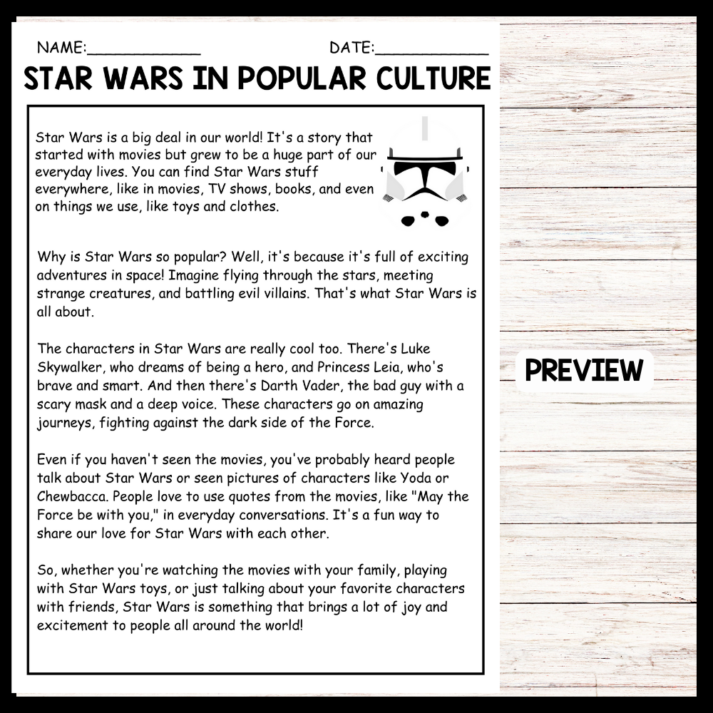 - "STAR WARS IN POPULAR CULTURE" MAY THE FOURTH Reading Comprehension