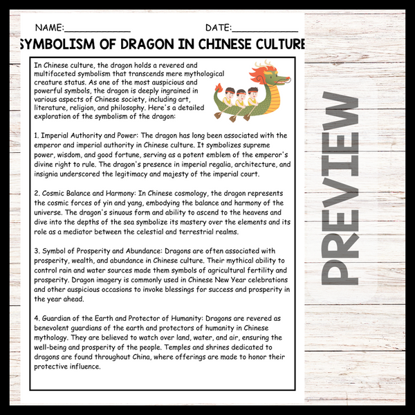 - "SYMBOLISM OF DRAGON IN CHINESE CULTURE" DRAGON BOAT FESTIVAL Reading Comprehension
