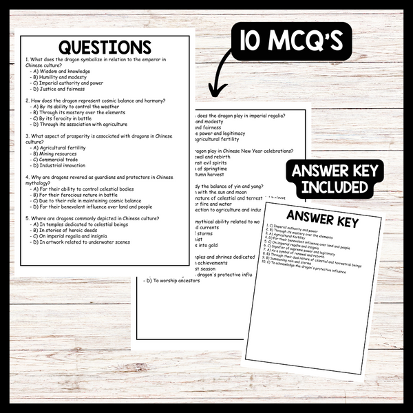 This passage provides a concise overview of the cultural significance of dragons in Chinese mythology and symbolism. Teachers can use this passage to introduce students to the multifaceted roles of dragons in Chinese culture, emphasizing key themes such as imperial authority, cosmic balance, prosperity, and guardianship. By exploring the symbolic associations of dragons, students can gain insight into the deep-rooted beliefs and values that have shaped Chinese society for centuries. Teachers can also facilitate discussions on how dragon symbolism is manifested in various aspects of Chinese culture, such as art, architecture, festivals, and religious practices. Additionally, students can explore the broader cultural significance of dragons across different civilizations and examine how these mythical creatures continue to inspire and captivate people's imaginations around the world.