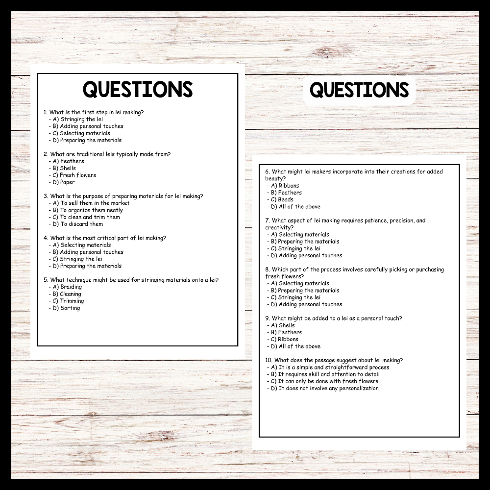 - "THE ART OF LEI MAKING" LEI DAY Reading Comprehension