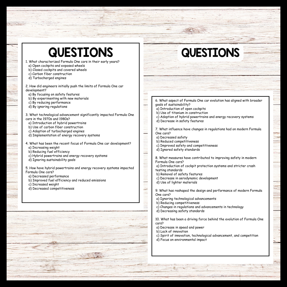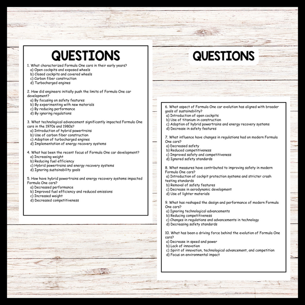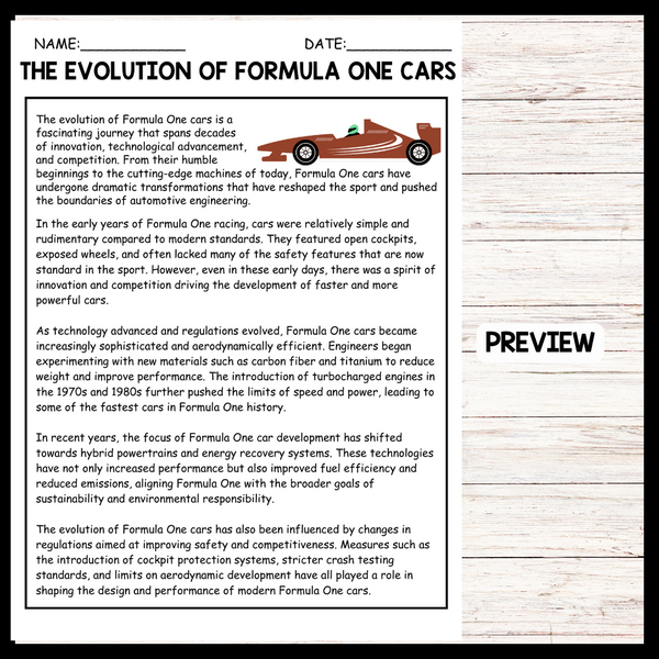 - "THE EVOLUTION OF FORMULA ONE CARS" MIAMI GRAND PRIX Reading Comprehension