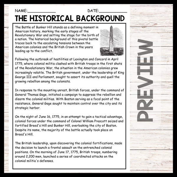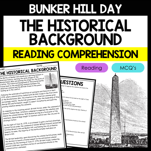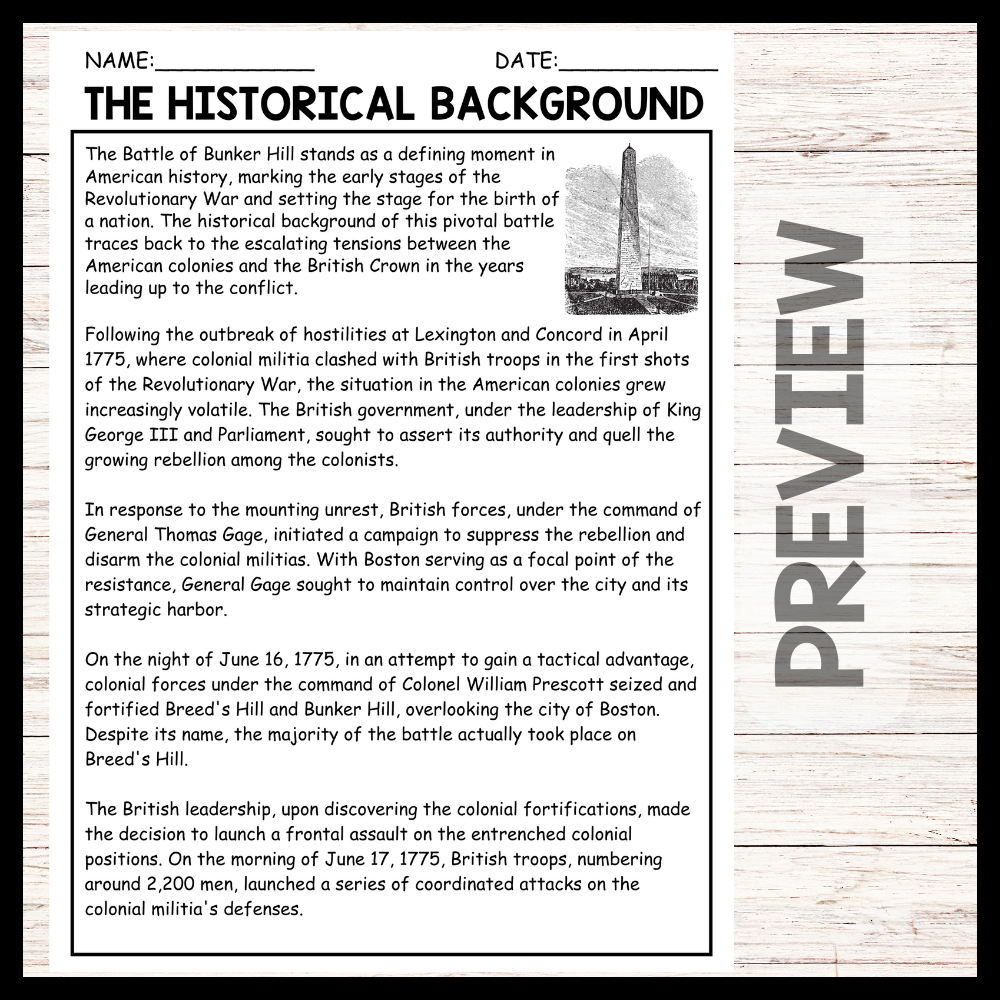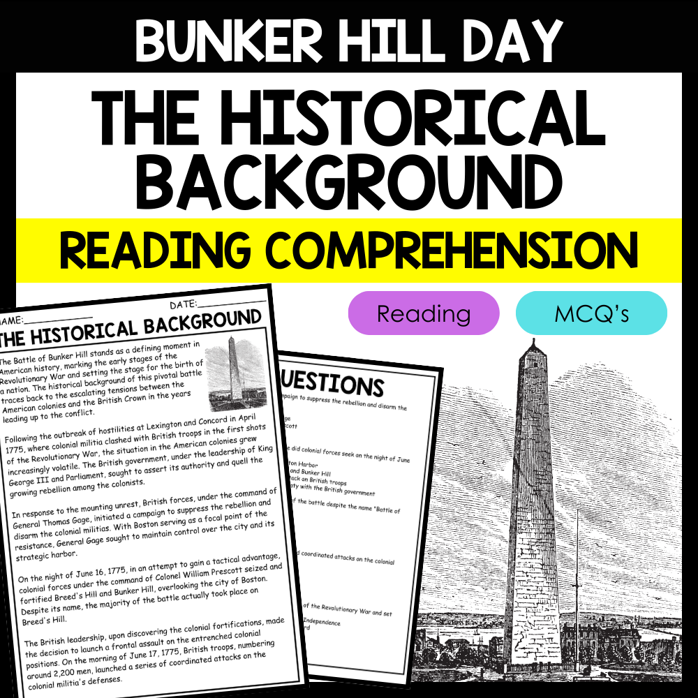 - "THE HISTORICAL BACKGROUND" BUNKER HILL DAY Reading Comprehension