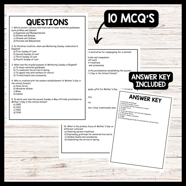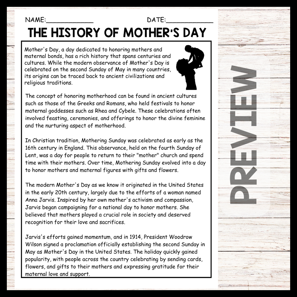 - "THE HISTORY OF MOTHER'S DAY" MOTHER'S DAY Reading Comprehension