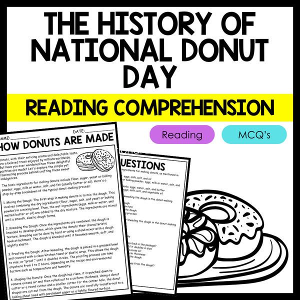 - "THE HISTORY OF NATIONAL DONUT DAY" NATIONAL DONUT DAY Reading Comprehension