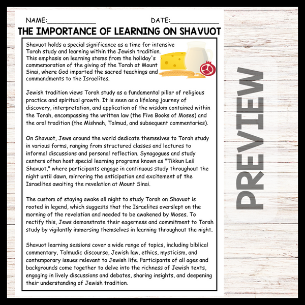 - "THE IMPORTANCE OF LEARNING ON SHAVUOT" SHAVUOT Reading Comprehension (Copy)