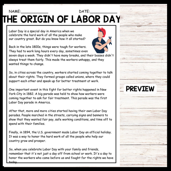 - "THE ORIGIN OF LABOR DAY" LABOR Day Reading Comprehension