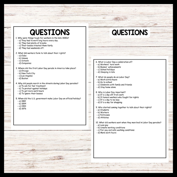 This passage describes the challenging conditions faced by workers in the late 1800s, leading to the formation of unions and the fight for better rights. It highlights the first Labor Day parade in New York City in 1882, which symbolized workers coming together to demand fair treatment. Eventually, Labor Day became an official holiday in 1894 to honor workers' contributions. This summary is helpful for teachers as it provides a simple, engaging narrative that helps students understand the historical significance of Labor Day and the labor movement.