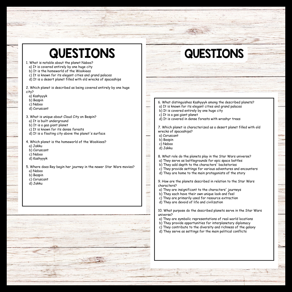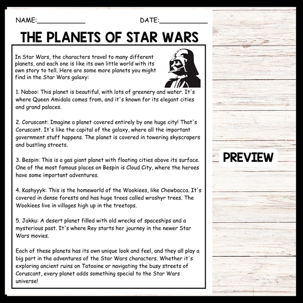 - "THE PLANETS OF STAR WARS" MAY THE FOURTH Reading Comprehension